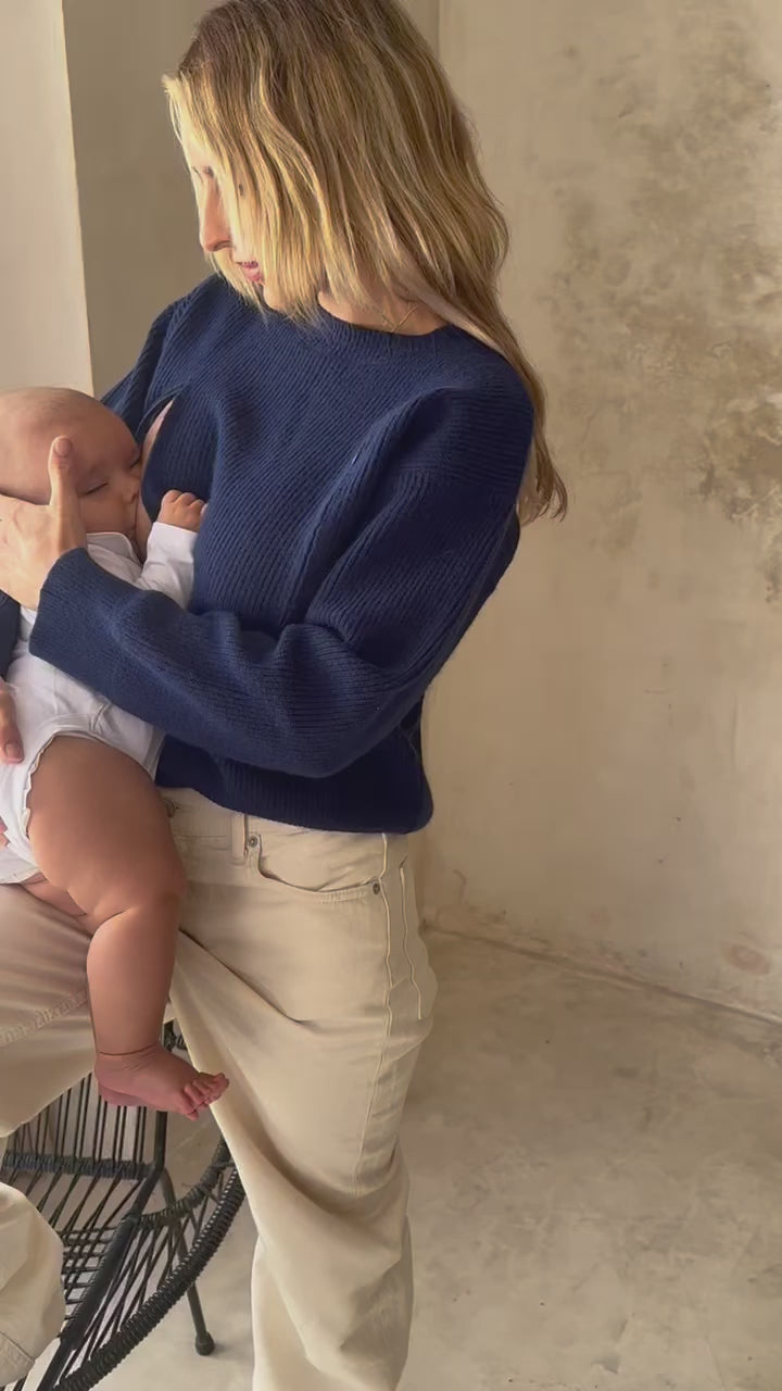 Stillpullover aus Strick mit seitlichen Reißverschlüssen zum Öffnen.