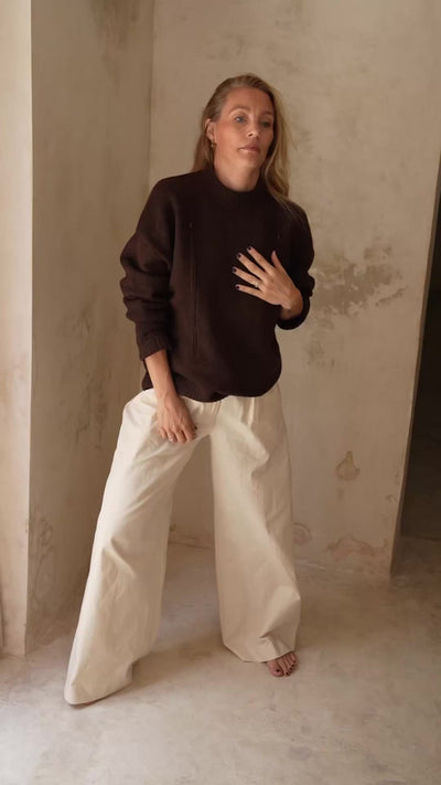 Pull d'allaitement en maille col rond avec zips d'ouvertures sur le coté.