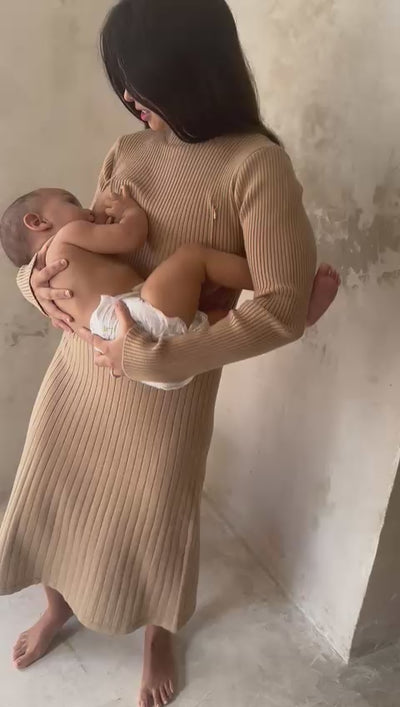 Robe d'allaitement en maille avec deux zips d'ouvertures sur le coté.