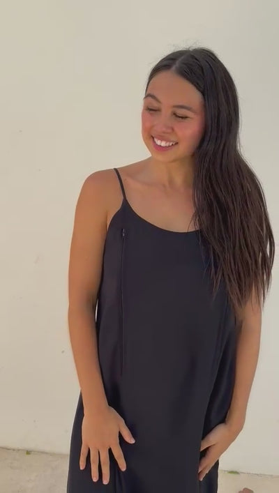 Robe d'allaitement à bretelles avec deux zips d'ouvertures sur le coté.